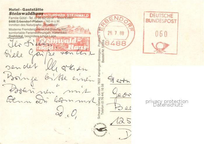 73662943 alte Postkarte Pfaben Hotel Gaststaette Steinwaldhaus Drehlokal postalisch gelaufen Erhaltung siehe scans [FriedD77] KatCode: 11110009377116