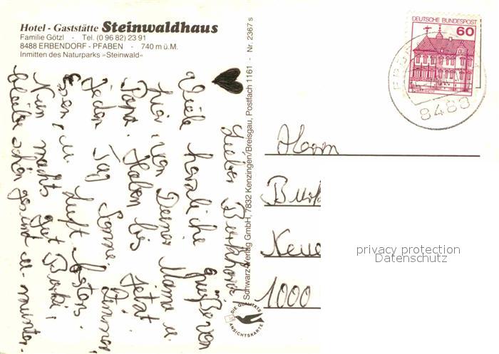 72673835 alte Postkarte Pfaben Hotel Steinwaldhaus postalisch gelaufen Erhaltung siehe scans [AndreD76] KatCode: 11110009377116