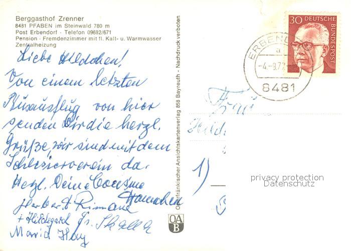73746180 alte Postkarte Pfaben Steinwald Berggasthof Zrenner Weissenstein Vogelfelsen Waldsee Saubadfelsen postalisch gelaufen Erhaltung siehe scans [WerneD78] KatCode: 11110009377116