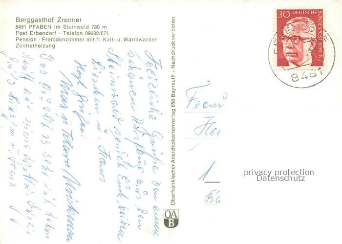 74036441 alte Postkarte Pfaben Steinwald Erbendorf Bayern Berggasthof Zrenner Felsformationen Landschaft Waldsee postalisch gelaufen Erhaltung siehe scans [FriedD77] KatCode: 11110009377116