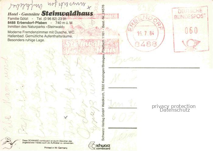 74049377 alte Postkarte Pfaben Steinwald Erbendorf Bayern Hotel Gaststaette Steinwaldhaus im Naturpark Steinwald postalisch gelaufen Erhaltung siehe scans [FriedD77] KatCode: 11110009377116
