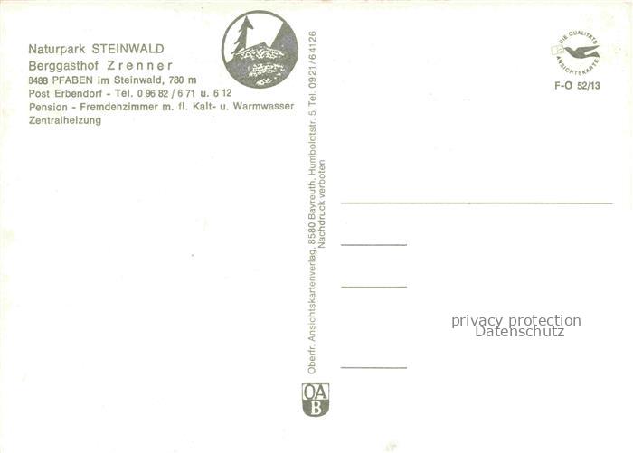 74049345 Pfaben Steinwald Erbendorf Bayern Landschaftspanorama Berggasthof Zrenner Gastraum Felsen postalisch nicht gelaufen Erhaltung siehe scans [FriedD77] KatCode: 11110009377116