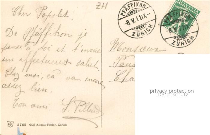 13798850 alte Postkarte Pfaeffikon am See ZH Ansicht vom See aus Boot postalisch gelaufen Erhaltung siehe scans [FriedD77] KatCode: 11470260900420
