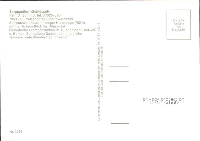 71830363 Pfaffenberg Wiesental Berggasthof Schluessel postalisch nicht gelaufen Erhaltung siehe scans KatCode: 11110008336103