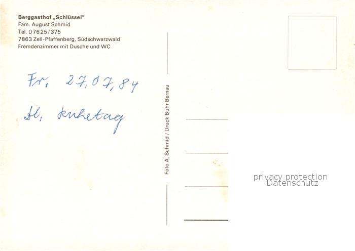 73158166 Pfaffenberg Wiesental Berggasthof Schluessel postalisch nicht gelaufen Erhaltung siehe scans [WerneD78] KatCode: 11110008336103