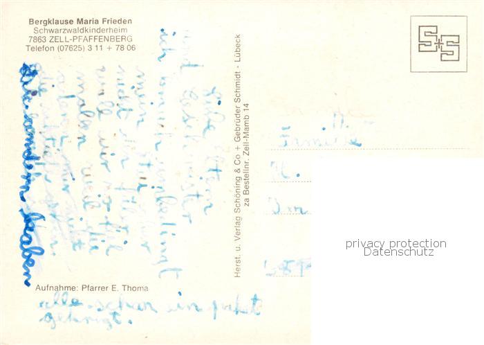 73845142 Pfaffenberg Zell im Wiesental Bergklause Maria Frieden postalisch nicht gelaufen Erhaltung siehe scans [WerneD78] KatCode: 11110008336103