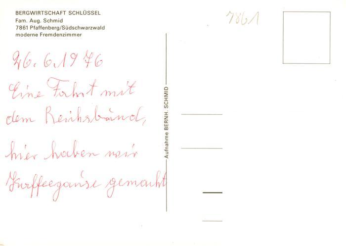 73935166 Pfaffenberg Zell im Wiesental Bergwirtschaft Schluessel Terrasse Panorama postalisch nicht gelaufen Erhaltung siehe scans [WerneD78] KatCode: 11110008336103