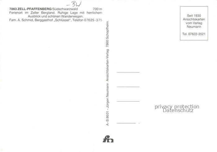 74137664 Pfaffenberg Zell im Wiesental BW Panorama postalisch nicht gelaufen Erhaltung siehe scans [WerneD78] KatCode: 11110008336103