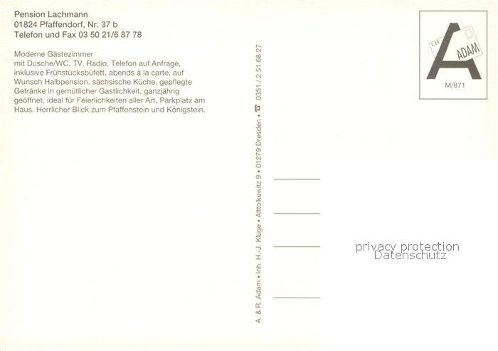 73742462 Pfaffendorf Koenigstein Pension Lachmann Garten Gaststube Zimmer Blick zum Pfaffenstein postalisch nicht gelaufen Erhaltung siehe scans [WerneD78] KatCode: 11110014287190
