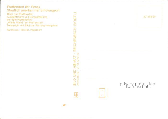 72374249 Pfaffendorf Koenigstein Pfaffenstein Aussichtsturm Berggaststaette Weisse Wand Festung Koenigstein Elbsandsteingebirge postalisch nicht gelaufen Erhaltung siehe scans KatCode: 11110014287190