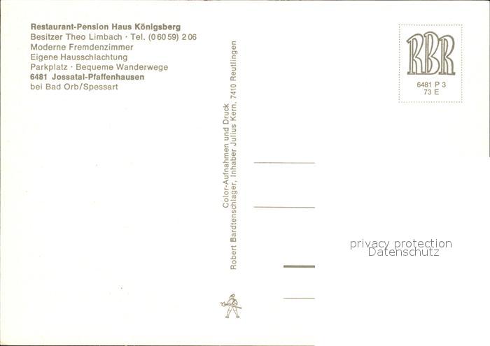 72114512 Pfaffenhausen Spessart Gesamtansicht Restaurant Pension Haus Koenigsberg postalisch nicht gelaufen Erhaltung siehe scans KatCode: 11110006435016