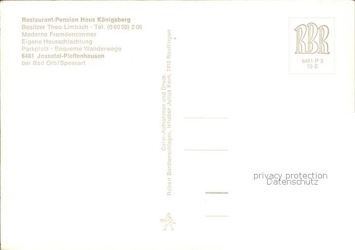 72129978 Pfaffenhausen Spessart Restaurant Pension Haus Koenigsberg postalisch nicht gelaufen Erhaltung siehe scans KatCode: 11110006435016