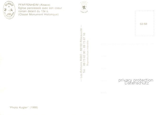 13826368 Pfaffenheim Haut Rhin Alsace Eglise paroissiale avec son coeur roman Monument Historique postalisch nicht gelaufen Erhaltung siehe scans [FriedD77] Frie Katcode 11170068368255