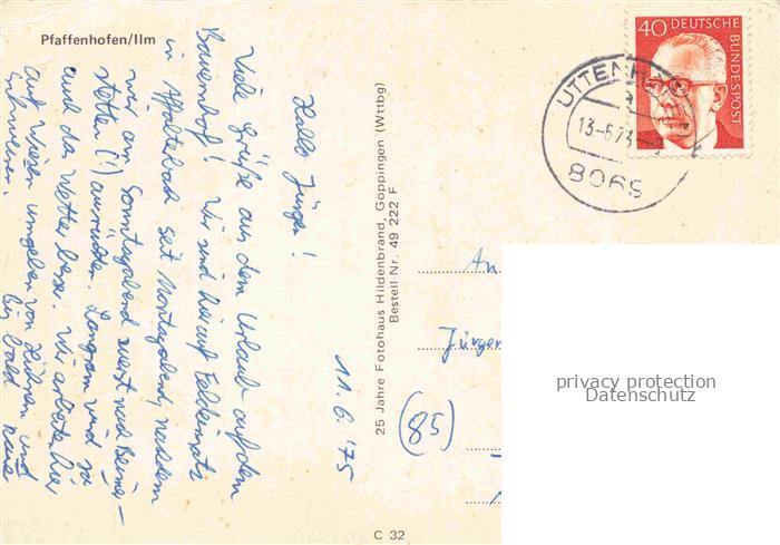 34142991 alte Postkarte Pfaffenhofen Ilm Bayern Ortsansicht mit Kirche postalisch gelaufen Erhaltung siehe scans [FriedD77] KatCode: 11110009186143