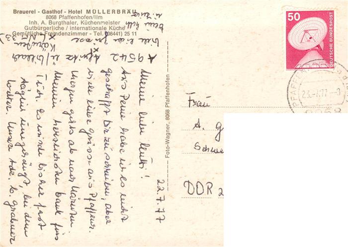 73943797 alte Postkarte Pfaffenhofen Ilm Brauerei Gasthof Hotel Muellerbraeu Kirche Marktplatz postalisch gelaufen Erhaltung siehe scans [WerneD78] KatCode: 11110009186143