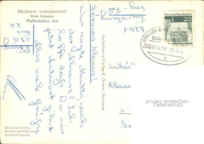 72251317 alte Postkarte Pfaffenhofen Inn Kirche Baeckerei Erich Schuster postalisch gelaufen Erhaltung siehe scans KatCode: 11110009187142