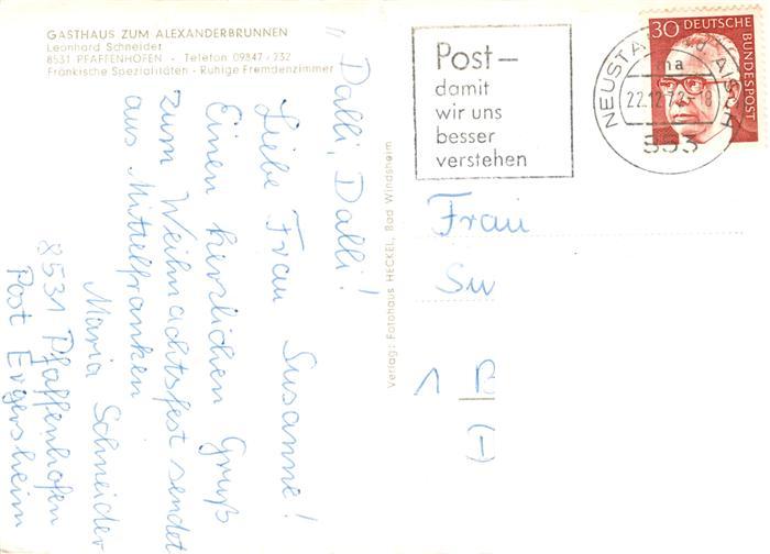 73886049 alte Postkarte Pfaffenhofen Nuernberg Gasthaus zum Alexanderbrunnen postalisch gelaufen Erhaltung siehe scans [FriedD77] KatCode: 11110009576143