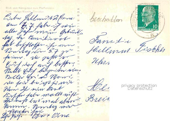72648852 alte Postkarte Pfaffenstein Koenigstein Saechsische Schweiz Blick vom Koenigstein postalisch gelaufen Erhaltung siehe scans [LiesaD40] KatCode: 11110014287190