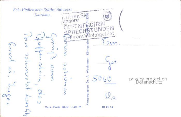 72183889 alte Postkarte Pfaffenstein Koenigstein Saechsische Schweiz Restaurant Fels postalisch gelaufen Erhaltung siehe scans KatCode: 11110014287190
