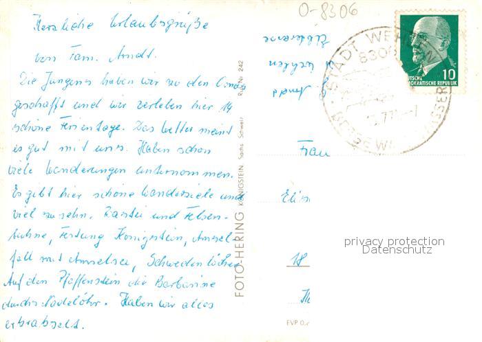 73030708 alte Postkarte Pfaffenstein Koenigstein Saechsische Schweiz Unter den Felstuermen postalisch gelaufen Erhaltung siehe scans [KathaD81] KatCode: 11110014287190
