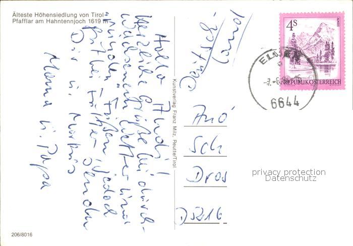72137993 alte Postkarte Pfafflar am Hahntennjoch aelteste Hoehensiedlung von Tirol postalisch gelaufen Erhaltung siehe scans KatCode: 11390331070825