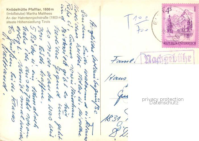 73362991 alte Postkarte Pfafflar Hahntennjoch postalisch gelaufen Erhaltung siehe scans [LiesaD40] KatCode: 11390331070825
