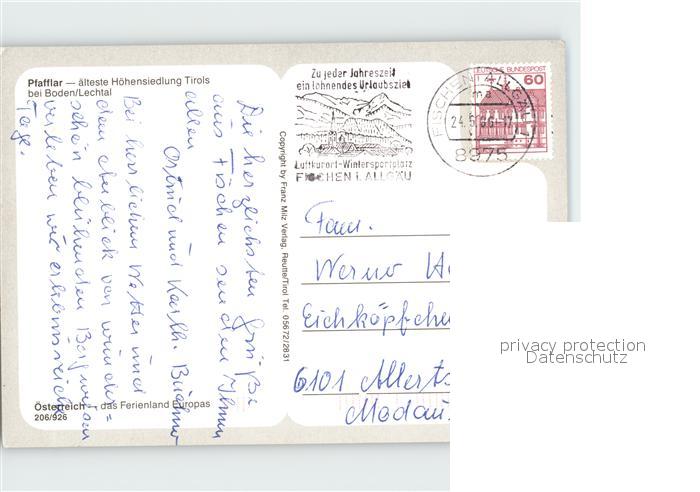 72256867 alte Postkarte Pfafflar Hoehensiedlung Lechtal postalisch gelaufen Erhaltung siehe scans KatCode: 11390331070825
