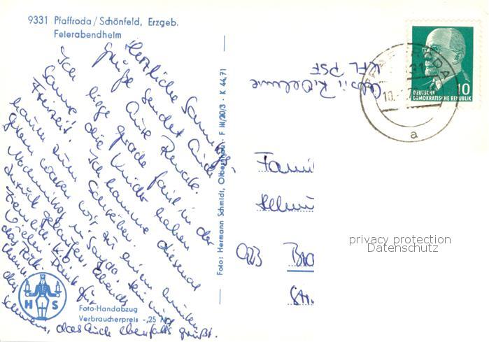 73784667 alte Postkarte Pfaffroda Feierabendheim Aussenansicht postalisch gelaufen Erhaltung siehe scans [LiesaD40] KatCode: 11110014181285