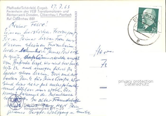 72363231 alte Postkarte Pfaffroda Ferienheim des VEB postalisch gelaufen Erhaltung siehe scans KatCode: 11110014181285