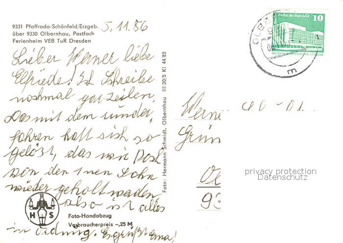 73037973 alte Postkarte Pfaffroda Ferienheim Winter postalisch gelaufen Erhaltung siehe scans [KathaD81] KatCode: 11110014181285