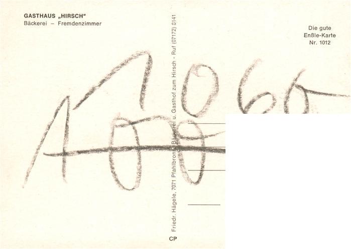 73886916 Pfahlbronn Gasthaus Hirsch Baeckerei postalisch nicht gelaufen Erhaltung siehe scans [WerneD78] KatCode: 11110008119001
