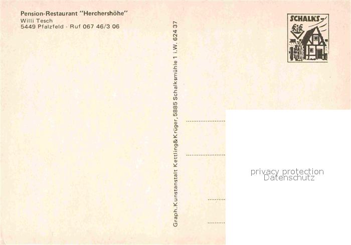 72893276 Pfalzfeld Hunsrueck Pension Herchershoehe postalisch nicht gelaufen Erhaltung siehe scans [AndreD76] KatCode: 11110007140117