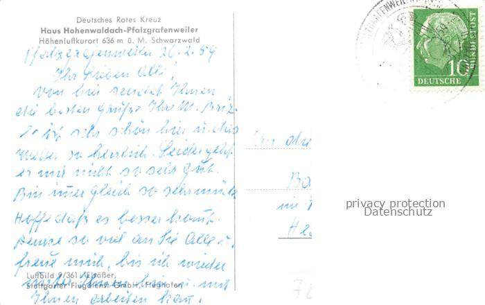 74023162 alte Postkarte Pfalzgrafenweiler DRK Haus Hohenwaldach Ortspartie Panorama postalisch gelaufen Erhaltung siehe scans [WerneD78] KatCode: 11110008237054