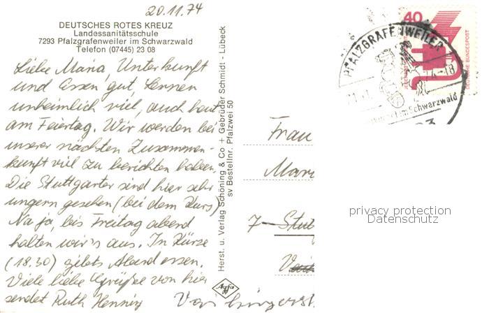 73769136 alte Postkarte Pfalzgrafenweiler DRK Landessanitaetsschule Haus Hohenwaldach Fliegeraufnahme postalisch gelaufen Erhaltung siehe scans [FriedD77] KatCode: 11110008237054