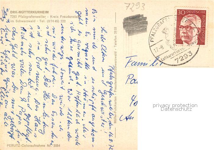 73021744 alte Postkarte Pfalzgrafenweiler DRK Muetterkurheim postalisch gelaufen Erhaltung siehe scans [WerneD78] KatCode: 11110008237054