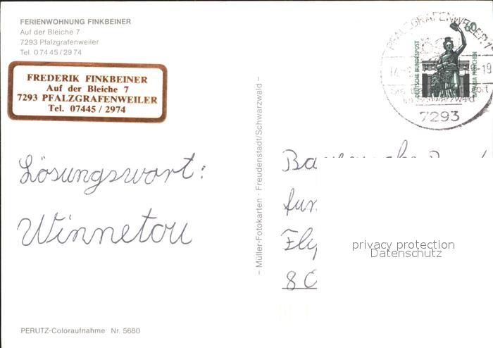 72374691 alte Postkarte Pfalzgrafenweiler Ferienwohnung Finkbeiner postalisch gelaufen Erhaltung siehe scans KatCode: 11110008237054