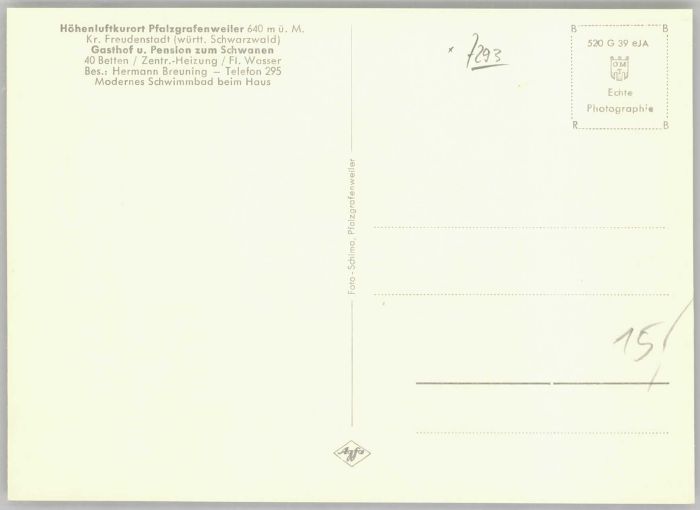40714053 Pfalzgrafenweiler Gasthof Pension zum Schwanen KatCode 11110008237054