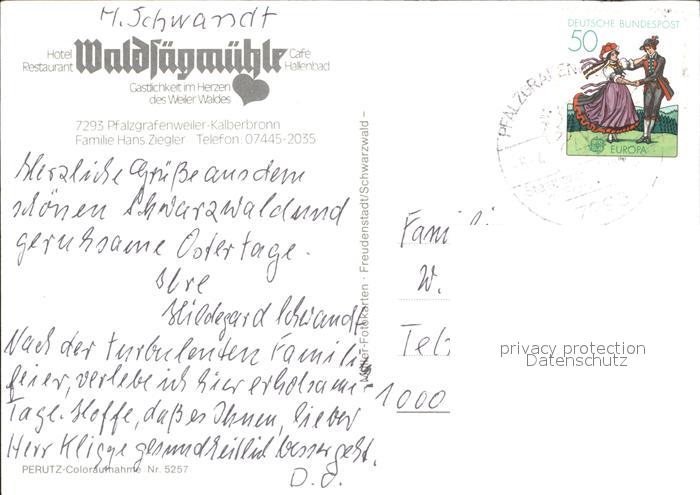 72108616 alte Postkarte Pfalzgrafenweiler Hotel Restaurant Waldsaegmuehle postalisch gelaufen Erhaltung siehe scans KatCode: 11110008237054
