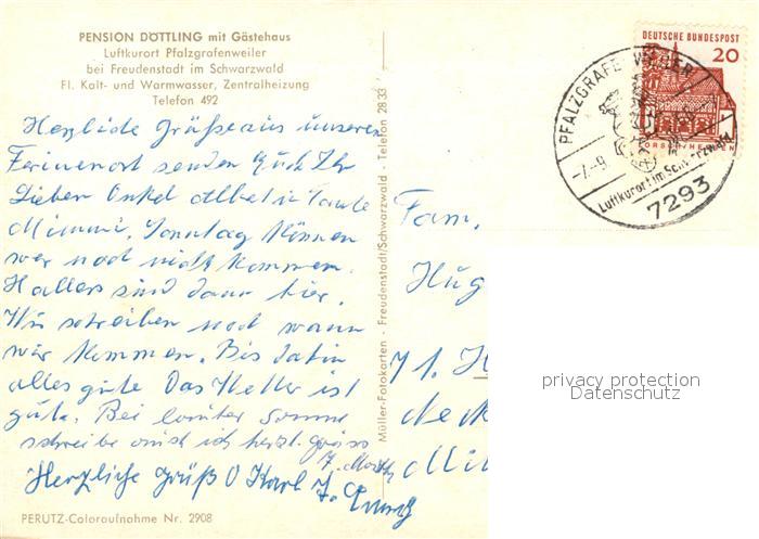 73172555 alte Postkarte Pfalzgrafenweiler Pension Doettling postalisch gelaufen Erhaltung siehe scans [NatalD47] KatCode: 11110008237054