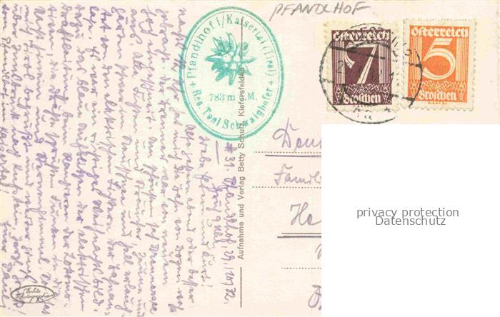 74023372 alte Postkarte Pfandlhof Kaisertal Kufstein Tirol AT Panorama postalisch gelaufen Erhaltung siehe scans [WerneD78] KatCode: 11390335070513