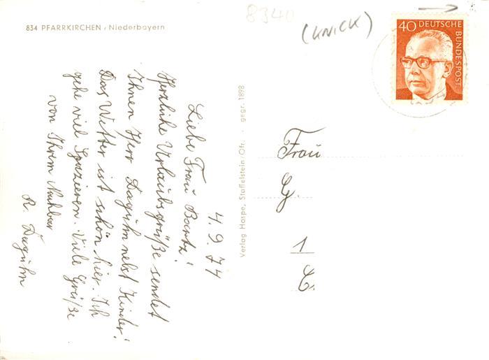 73893478 alte Postkarte Pfarrkirchen Niederbayern Panorama Kirche Monument Panorama Ortspartie postalisch gelaufen Erhaltung siehe scans [WerneD78] KatCode: 11110009277138