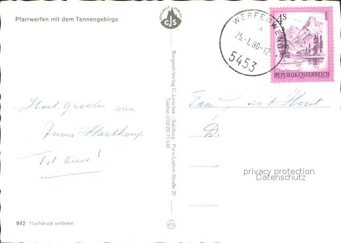 72094830 alte Postkarte Pfarrwerfen mit Tennengebirge postalisch gelaufen Erhaltung siehe scans KatCode: 11390322050416