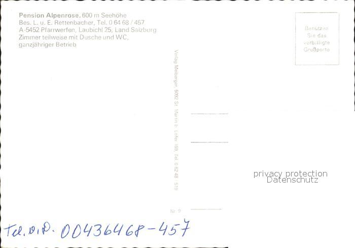 72610809 Pfarrwerfen Pension Alpenrose postalisch nicht gelaufen Erhaltung siehe scans [AndreD76] KatCode: 11390322050416