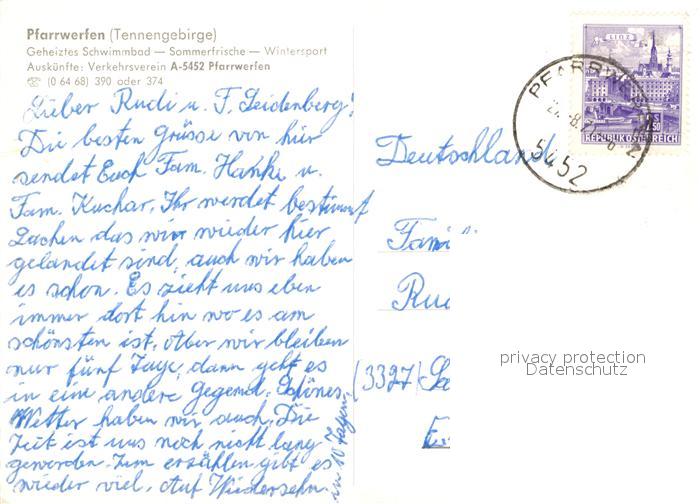 13339187 alte Postkarte Pfarrwerfen Schwimmbad postalisch gelaufen Erhaltung siehe scans [WerneD78] KatCode: 11390322050416