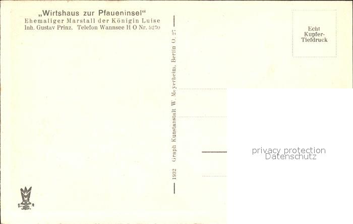 72424526 Pfaueninsel Berlin Wirtshaus zur Pfaueninsel Havel postalisch nicht gelaufen Erhaltung siehe scans KatCode: 11110011000000