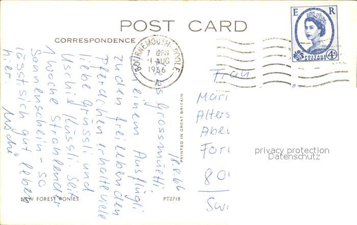 alte Postkarte Pferde New Forest Ponies postalisch gelaufen Erhaltung siehe scans