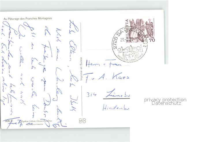 alte Postkarte Pferde Paturage Franches Montagnes postalisch gelaufen Erhaltung siehe scans