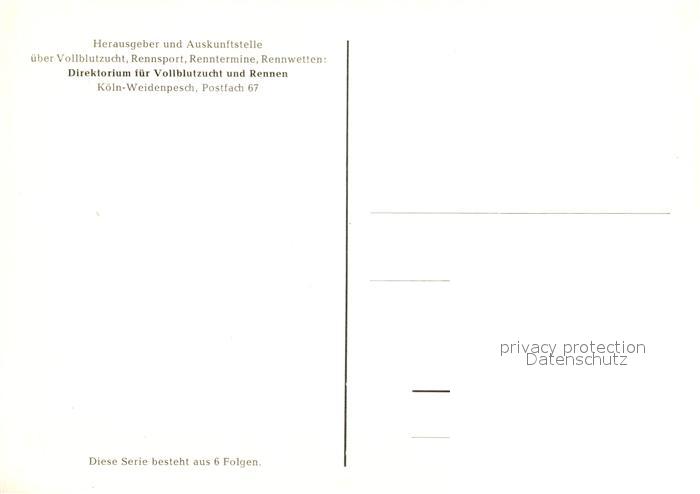 Pferdesport Pferderennen Reitsport Rennfarben deutscher Vollblutzuechter Wappen Folge II postalisch nicht gelaufen Erhaltung siehe scans [PaolaD17]
