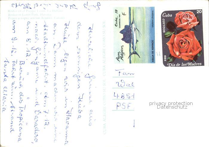 alte Postkarte Pferdesport Pferderennen Reitsport Rodeo Lenin Park Havana postalisch gelaufen Erhaltung siehe scans