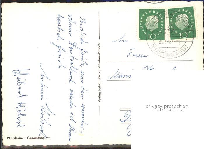 71848697 alte Postkarte Pforzheim postalisch gelaufen Erhaltung siehe scans KatCode: 11110008231000